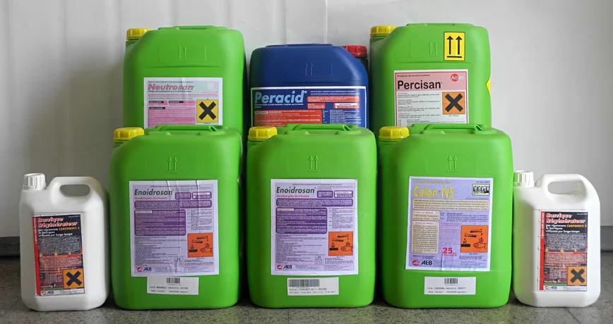 Tenemos una extensa gamma de detergentes y desinfectantes, adaptados a las necesidades de cada bodega.