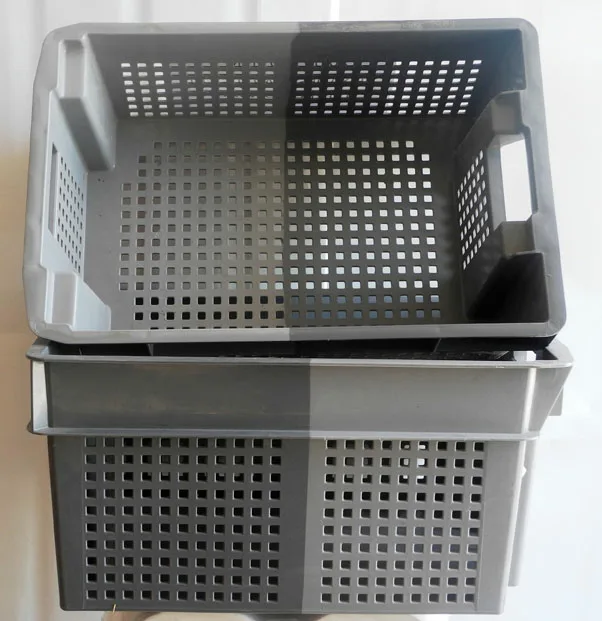 Apilable y encajable para minimizar espacio cuando están vacías, al mismo tiempo realizadas en dos colores para diferenciar el apilado en lleno o el apilado en vacío.