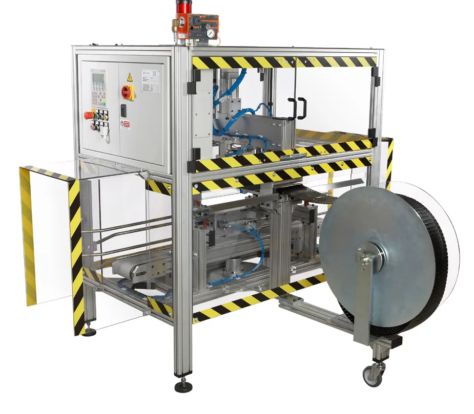 Nuestra máquina de inserción de asas automática está preparada para tratar con diferentes tamaños decaja, desde 90x155x205mm hasta 225x250x350mm.