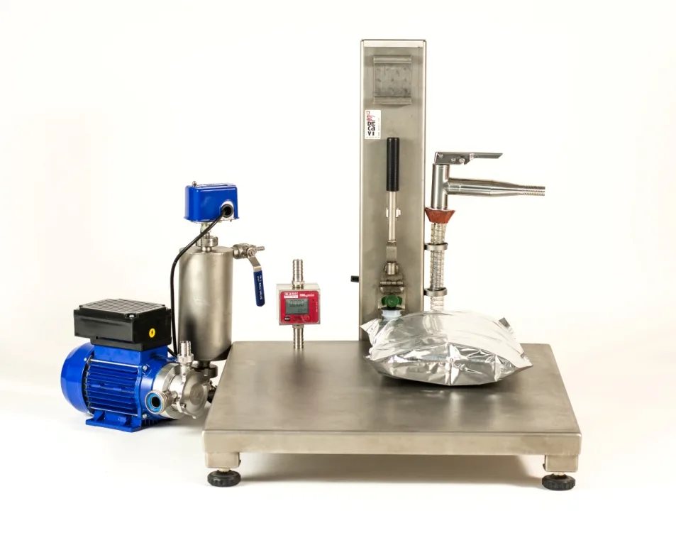Esta llenadora para productos densos incorpora el presostato para el caudalímetro de turbina y la bomba.