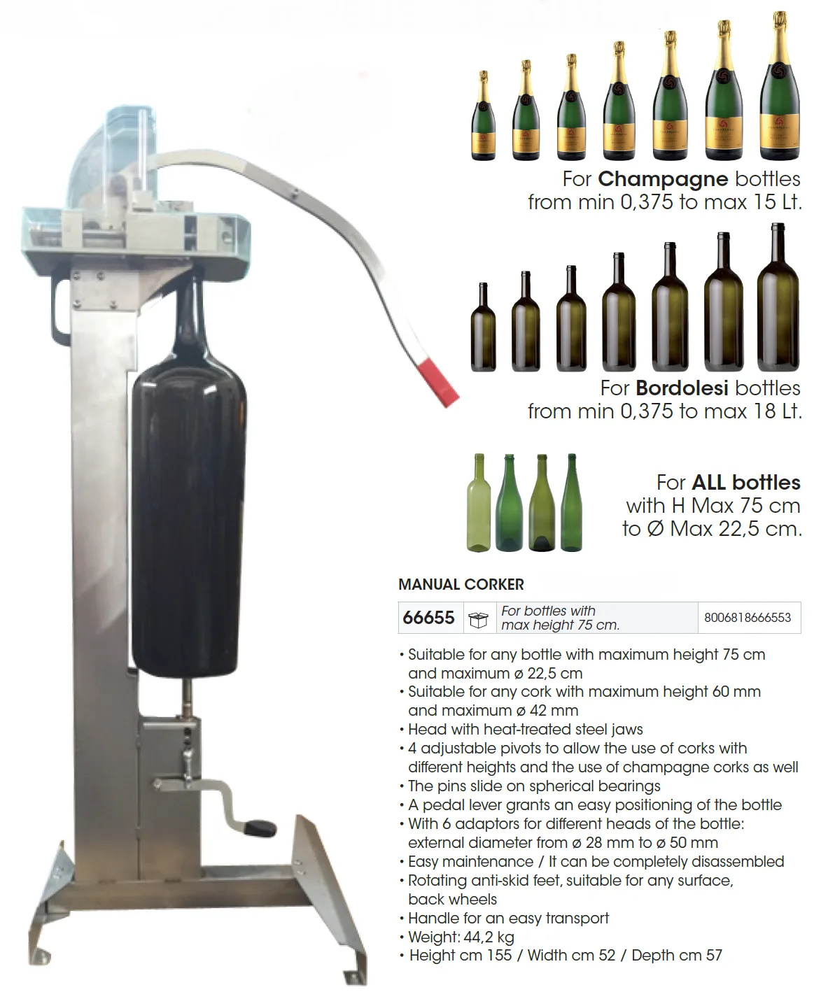 Taponadora botellas pequeños y grandes formatos manual para vino y espumosos