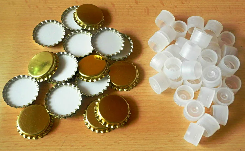 Tapones corona para diferentes tipos de botellas, de tres calidades diferentes, en hojalata, inoxidable y aluminio, dependiendo de la temperatura,humedad y ventilación que tenga su bodega, todos ellos equipados con disco de vinilo de poli propileno o bien con disco especial.